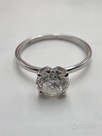 Meraviglioso anello solitario in oro bianco 14 carati con uno splendido diamante naturale taglio brillante da 0,99 carati H-I color con il suo certificato originale.