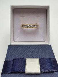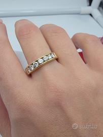Bellissimo anello a veretta in oro giallo massiccio 18 carati con 7 stupendi diamanti naturali di taglio brillante caratura totale 1,05.