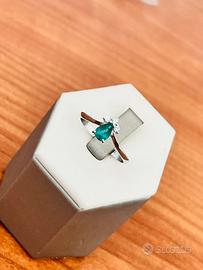 Anello im oro bianco 18 kt. Con diamanti e smeraldo taglio goccia.