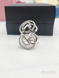 Bellissimo anello in oro bianco massiccio 18 carati con meravigliosi intrecci in stile floreale a formare un fascione sul dito con file di 72 diamanti naturali di taglio brillante di 0,75 carati totali.
