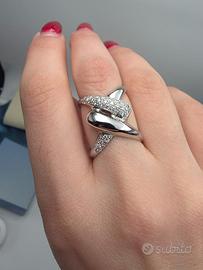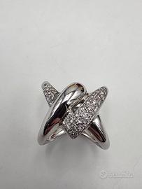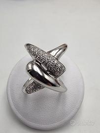 Bellissimo anello intrecciato in oro bianco massiccio 18 carati con pavé di 43 diamanti naturali di taglio brillante sull’intreccio.