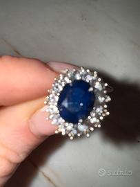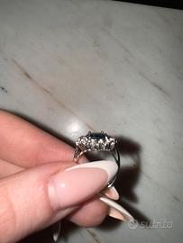 Anello oro bianco 375 e zaffiro e topazi Zaffiro molto grande Acquistato sul sito e tenuto impeccabilmente Comprato a 500€ Misura 8/9