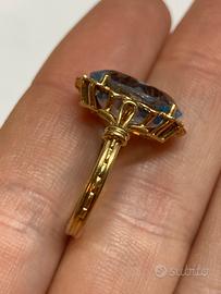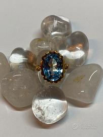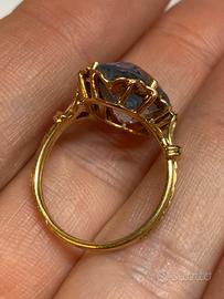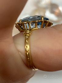 Bellissimo anello in oro giallo 750 con grande topazio azzurro centrale. Peso 5,80gr Misura 14 Con possibilità di essere portato a misura. Lato lungo pietra 1,5cm Spedizione con scontrino fiscale L. 3106