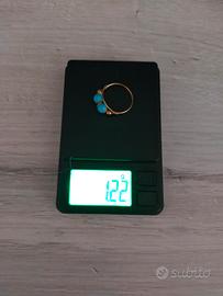 ANELLO ORO GIALLO 750 CON TURCHESE, PESO GR 1,22, DIAMETRO CM 1,80.