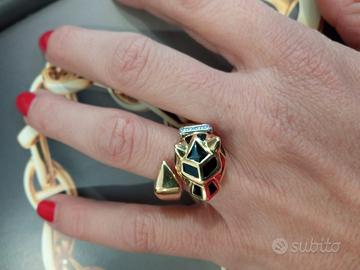 Bellissimo e maestoso anello in oro 18 carati, caratterizzato da una lavorazione animalier a pantera e brillantini laterali.