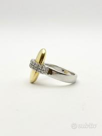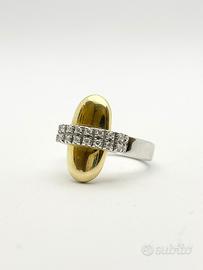 Anello in oro giallo e bianco 18KT (750 ‰) di grammi 7.16 impreziosito da diamanti naturali forma tonda e taglio a brillante, a scritta NANIS.