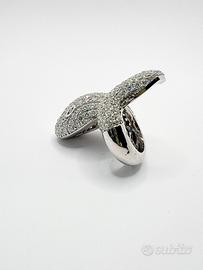 Anello in oro bianco 18 KT ( 750 ‰ ) di grammi 28.10, con diamanti naturali taglio a brillante per ct 8.90; purezza VVS colore G, scritta MILLER PARIS.