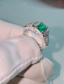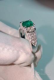 Anello cocktail Smeraldo centrale naturale Zambia ct.1.5 e diamanti naturali ct.1.30 circa vs/vvs g/f, nuovo mai indossato collezione personale.