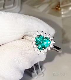 Anello oro 18k gr.3 circa , Smeraldo naturale intrattatto taglio cuore ct.1.50 e diamanti naturali ct.0.70 vs/vvs g/f .