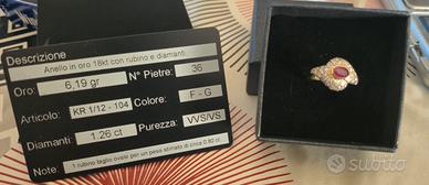 bellissimo anello Oro18kt peso 6,19 grammi con rubino ovale da 0.80ct e 1.26ct di diamanti Naturali SE C'È L'ANNUNCIO VUOL DIRE CHE È DISPONIBILE