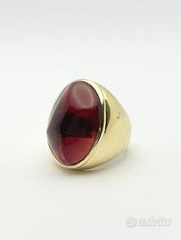 Anello in oro giallo 18 KT ( 750 ‰ ) di grammi 20.80 impreziosito da tormalina naturale taglio sfaccettato, a scritta POMELLATO.