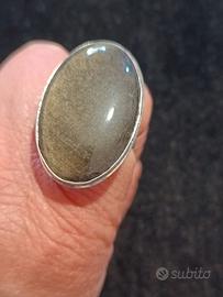 Anello placcato argento 925 - punzone di reale placcatura 925 - e pietra naturale di Silver Obsidian. Misura 9,5 USA - 22,5 Italiana. Pietra molto potente. Effetto molto iridescente. Mai indossato.