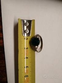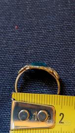 Anello con pietra azzurra e design argentato.