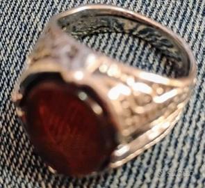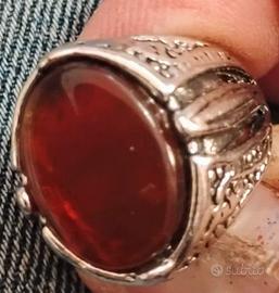 Anello vintage unisex, proveniente dal Pakistan o Kashmir, con una pietra rossa incastonata in argento 925.