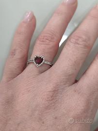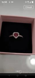 Anello Pandora con cuore rosso circondato da zirconi in argento 925 . misura 25