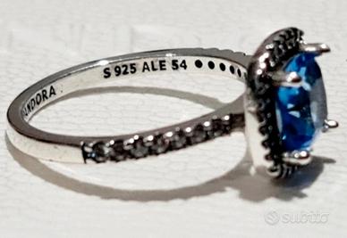Anello Pandora con pietra blu in argento 925°, misura 54, corrisponde alla misura 7 munito di sacchetto e busta esterna da regalo Pandora