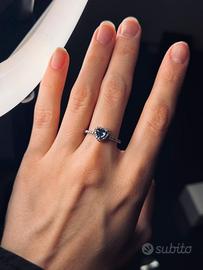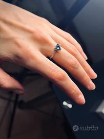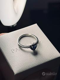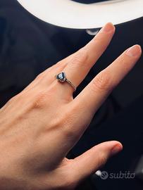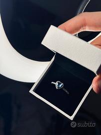 Anello Pandora con cuore azzurro luminoso, simbolo di purezza, serenità e sentimenti sinceri. Elegante e delicato, dona un tocco di colore raffinato a ogni look.