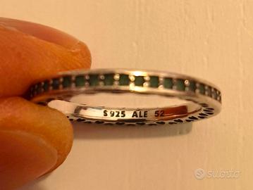 Anello Pandora con design a cuori radiosi. - Colore verde menta. - Dettagli in argento.