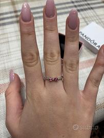Splendido anello Pandora originale in argento sterling 925, modello "Fiocco Scintillante" con pietre di zirconia cubica color rosa intenso.