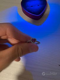 qnello pandora con cuore rosso e diamantini argentati nella metà dell’anello taglia 54 volendo aggiungendo 8 euro do anche la scatolina con luce uv a cuore rossa vendo perché lo avevo preso per una persona ma non gli è stato mai dato e nuovo mai stato portato.