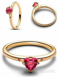 Anello Pandora Solitario Cuore Rosso: - placcato in oro, 18 carati - nuovo con garanzia 2 anni - possibilità di cambiare taglia fino al 18/04
