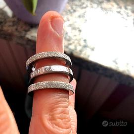 Anello formato da n. 3 fedine indipendenti lisce e zigrinate in argento tit. 925, da indossare insieme o separate.