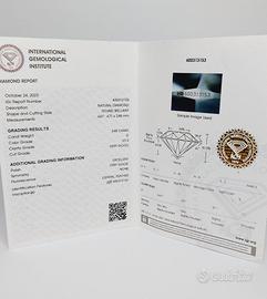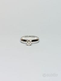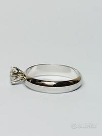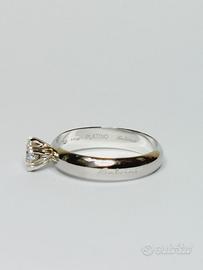 Anello in platino di grammi 4.64 con diamante naturale taglio tondo a brillante di ct 0.40 purezza VS2 colore G, certificato IGI. Scritta Salvini.