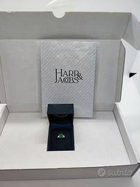 prezioso anello di Harris e Jacobs realizzato in platino da 4,16 grammi di peso, con 2 diamanti da 0,43 carati, grado di purezza VVS e colore E/F, ed un bellissimo smeraldo naturale taglio baguette da 1,52 carati di colore green e grado di purezza transparent -good quality. purtroppo la misura è 16,50 millimetri e per me è sempre stato stretto. Vendo a prezzo di realizzo. NB come si vede dalle foto l'anello reca all'interno la caratura del platino, la firma del creatore ed è venduto con la sua scatola originale e le certificazioni gemmologiche. Disponibile ad ogni controllo presso una gioielleria di vostra fiducia in roma zona eur. trattative riservate. Contattatemi solo se veramente interessati. No perditempo