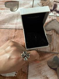 Anello quadrifoglio pandora regolabile in argento, usato poch volte. Compreso di scatolino