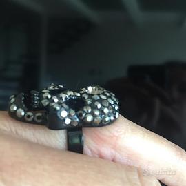 anello regolabile luminosissimo nero con teschio tempestato di brillantini come nuovo!