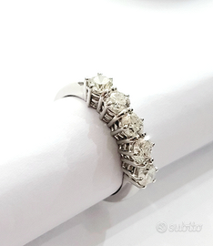 Anello veretta Donna firmato (Astralia ) n.5 Diamanti incastonati in 6 griffe Ct 1,35 lavorata in Oro Bianco 18kt-750%- Grammi 3,64