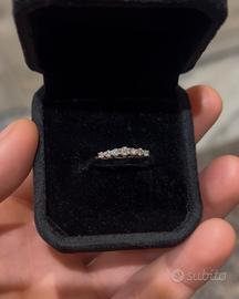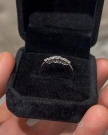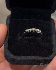 Vendo anello riviera oro bianco 18kt e diamanti taglio brillante tondo. Peso oro 2.5g Pietre 7 Pz colore F/G purezza VS/VVS tot 0.26 ct. Ottima qualità nella lavorazione delle montature eutilizzo di diamanti altamente selezionati per qualità con purezza tra il VVS e VS, colore e calibrazione. PERIZIA SVOLTA DA ORAFO - INCASTONATORE - GEMMOLOGO DIPLOMATO I.G.I Anversa Disponibile video se necessario