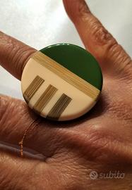 anello regolabile realizzato in legno di Robles e avventurina verde