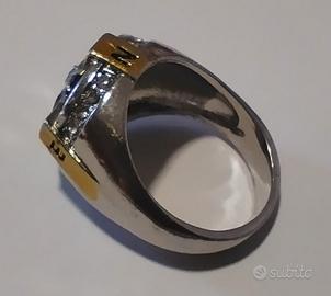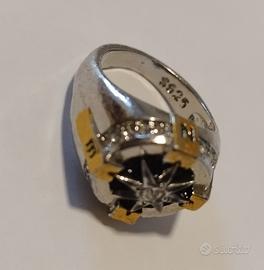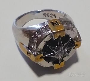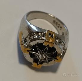 Anello rosa dei venti in acciaio, per uomo, nuovo, mai utilizzato. Diametro interno 17 mm Colore argento - oro