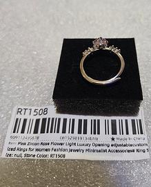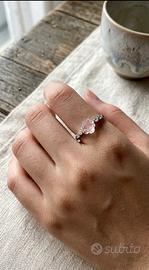 Anello Rosa in Argento 925 e Zirconi - Regolabile