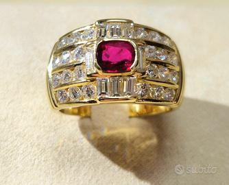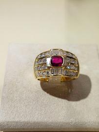 Importante Anello oro giallo 18K con rubino centrale da 0,60k e diamanti naturali per 2,28k misura 18 modificabile fatto pulire e lucidare