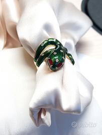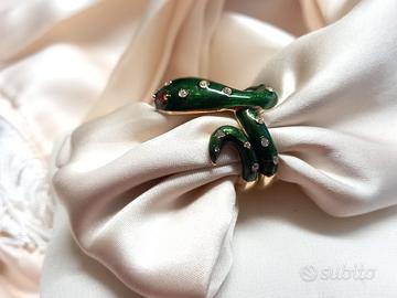 Anello serpente verde smeraldo in argento 925 placcato oro 18 Kt smaltato verde e con cubic zirconie