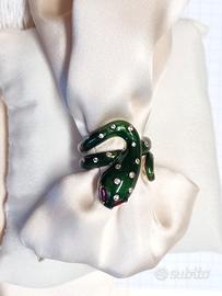 Anello serpente verde smeraldo in argento 925 placcato oro 18 Kt smaltato verde e con cubic zirconie