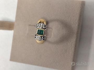 VENDO CAUSA INUTILIZZO ANELLO REALIZZATO A MANO DAL FAMOSO MAESTRO ORAFO RECARLO IN ORO GIALLO 18 KT, DIAMANTI TAGLIO BRILLANTE COLORE F E PUREZZA VVS PER UNA CARATURA DI 0.08 SU FIOCCO IN ORO BIANCO E SMERALDO NATURALE TAGLIO SMERALDO PROVENIENZA COLOMBIA CON UNA CARATURA DI 0.90 . CERTIFICATO INTERNAZIONALE E PERIZIA GEMMOLOGICA DELLE PIETRE PREZIOSE