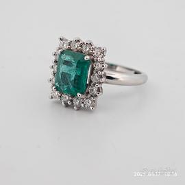 Anello con smeraldo naturale 3.44ct e diamanti naturali D/E color purezza vvs/vs 1.04ct oro 18kt peso 7 gr super prezzo 2.500€ anello nuovo !