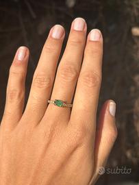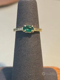 Anello in argento 950 placcato oro giallo con 40 millesimi ed extra smeraldo Brasiliano 0,5ct con brillantini.