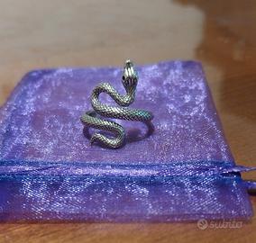 anello snake serpente in argento 925,massiccio, regolabile occhi verdi, lavorazione artigianale. nuovo