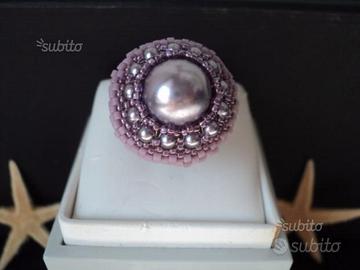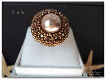 Vendo anello con base regolabile, realizzato a mano con la tecnica peyote, tessitura di perline. Il materiale è pregiatissimo, con minuteria di precisione e perle swarovski.