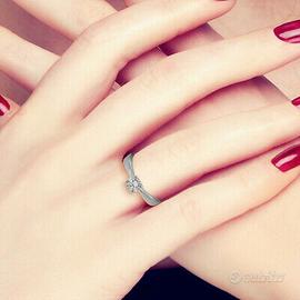 Nuovo anello solitario in oro bianco 18 kt con diamante naturale taglio