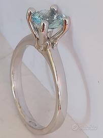 con incastonato a griffe splendida Pietra Naturale Acquamarina di 1,06 Carati taglio Rotondo a Brillante .