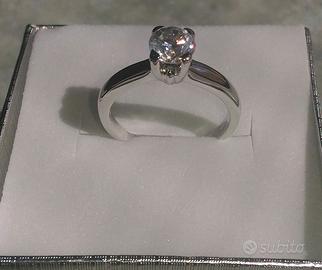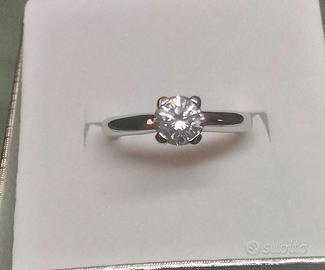 Anello solitario in oro bianco 750 con incassato diamante naturale taglio brillante di forma rotonda. Caratteristiche del diamante: