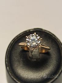 Propone anelli solitari in oro Bianco, Giallo, Rosa 750‰ di circa 5 grammi con Moissanite certificata GRA da 1,00carati D VVS1.