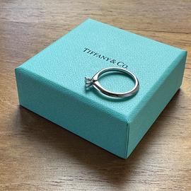 Anello di fidanzamento solitario Tiffany & Co con diamante 0,20 carati VVS2. Modello Setting in platino mai indossato.