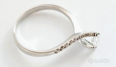 Anello da Donna firmato Astralia solitario modello Valentino con Diamante centrale e Diamanti a contorno incastonato in Oro Bianco-18kt 750 %- Grammi 2,90