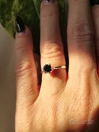 anello in oro bianco 750 gr 2,70 diamante nero naturale taglio brillante ct 0.73 misura 12,5
